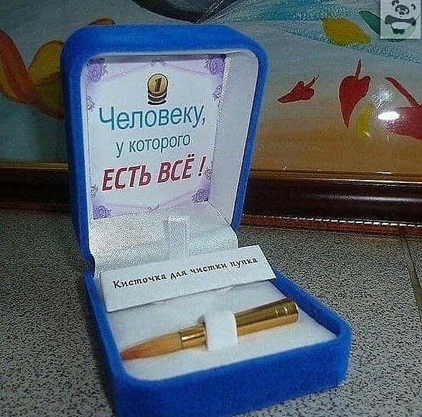 Что нибудь маленькое, домой точно не понесет, будет валятся в столе на работе.