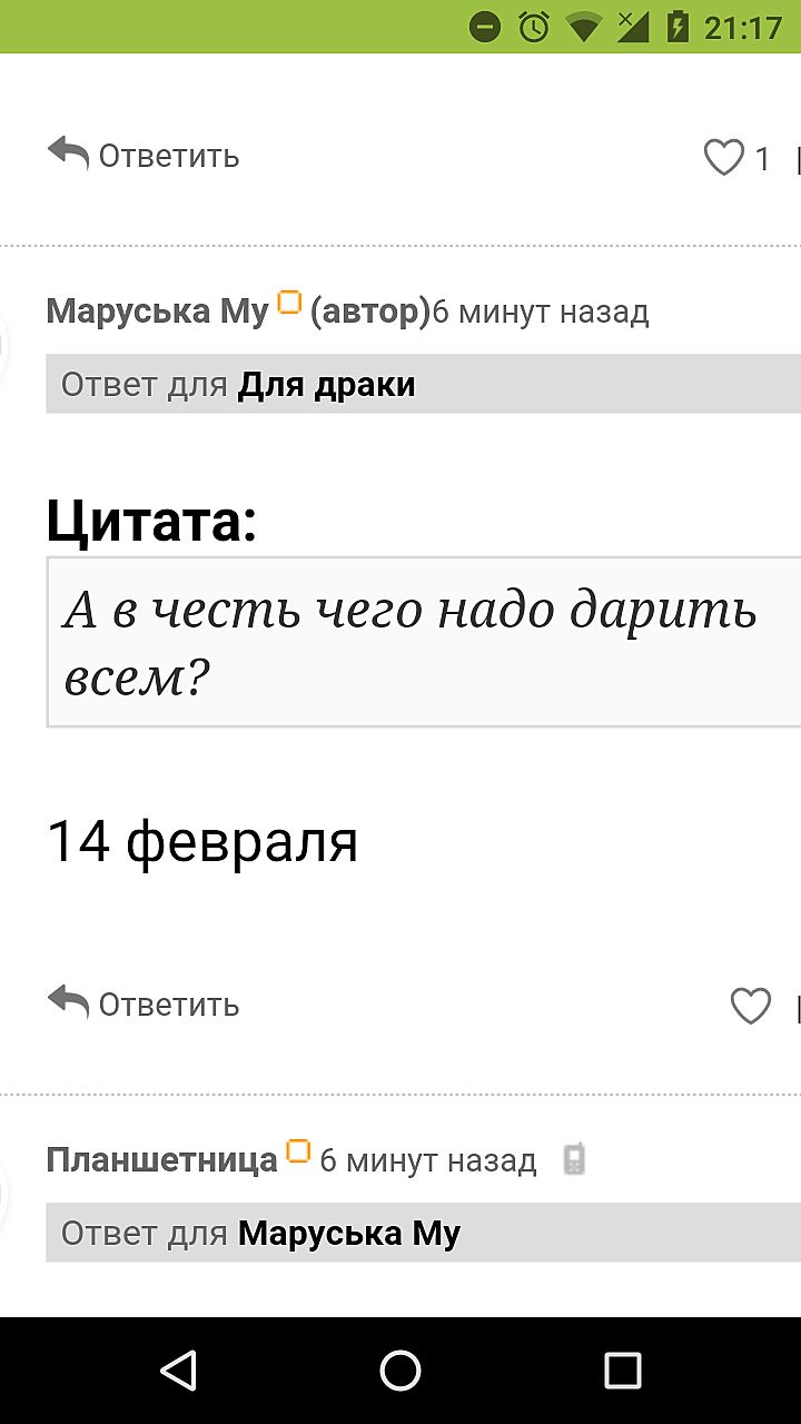 Где здесь о 14 февраля? Ткните. И я у автора спросила не мой ли ответ в прошлой теме навеял этот вопрос. Остальное ваши фантазии или не умение воспринимать информацию