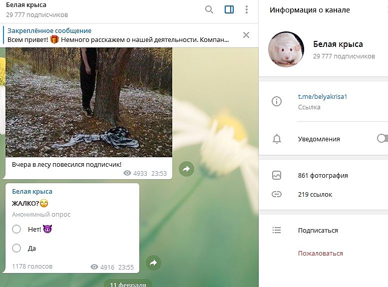 Черная, белая крыса. Почему не удаляют эти каналы в телеграм. Они уже давно. Тысячи подписчиков. Я тоже жалобы отправляла.