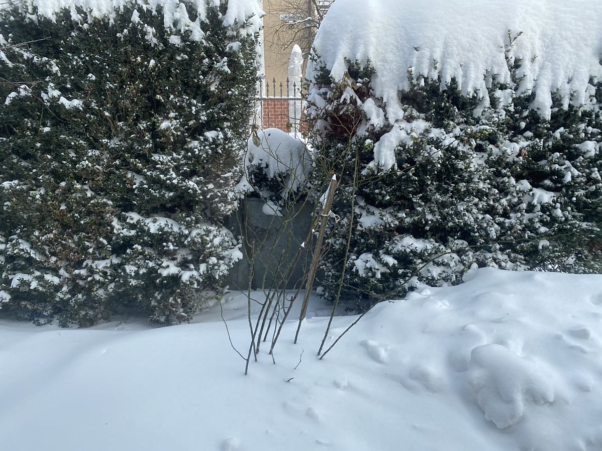 На фото вид из окна, за сугробом между кустами люк от канализации и там тепло.