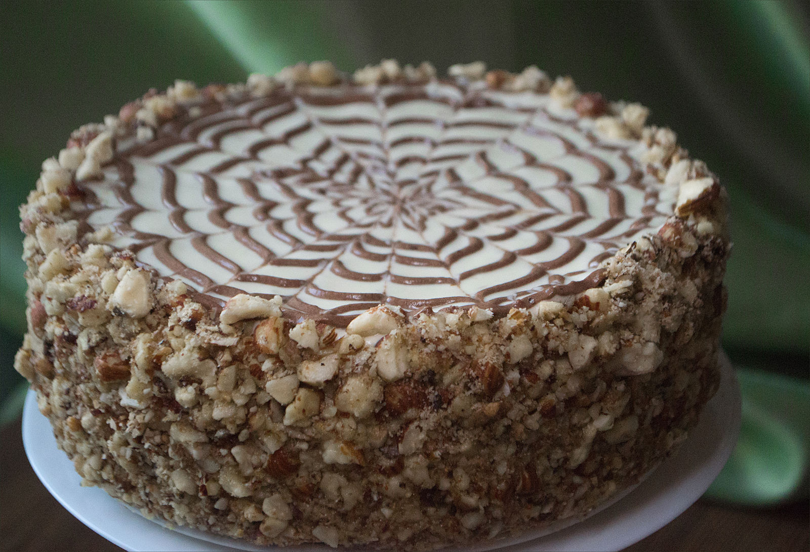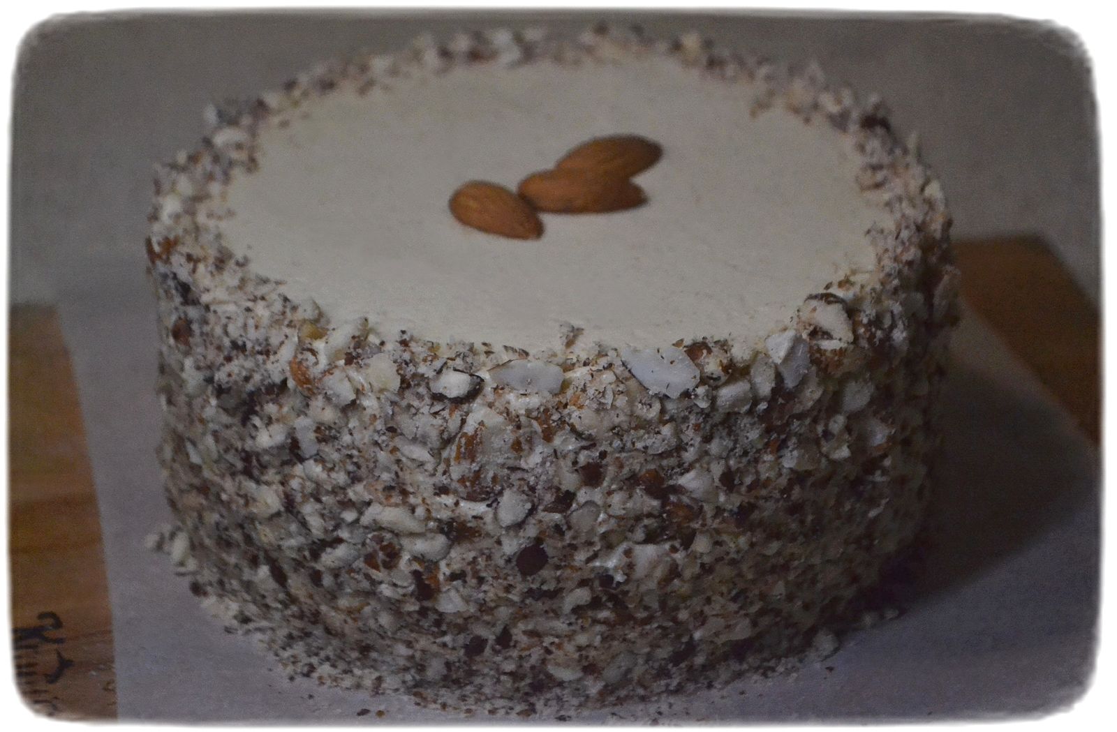 Коржі з білків, молотого мигдалю (можна фундук або грецький), білків і еритритолу. Крем - кокосове молоко, яйця, еритрол, арахісова паста, безлактозне масло 82%.