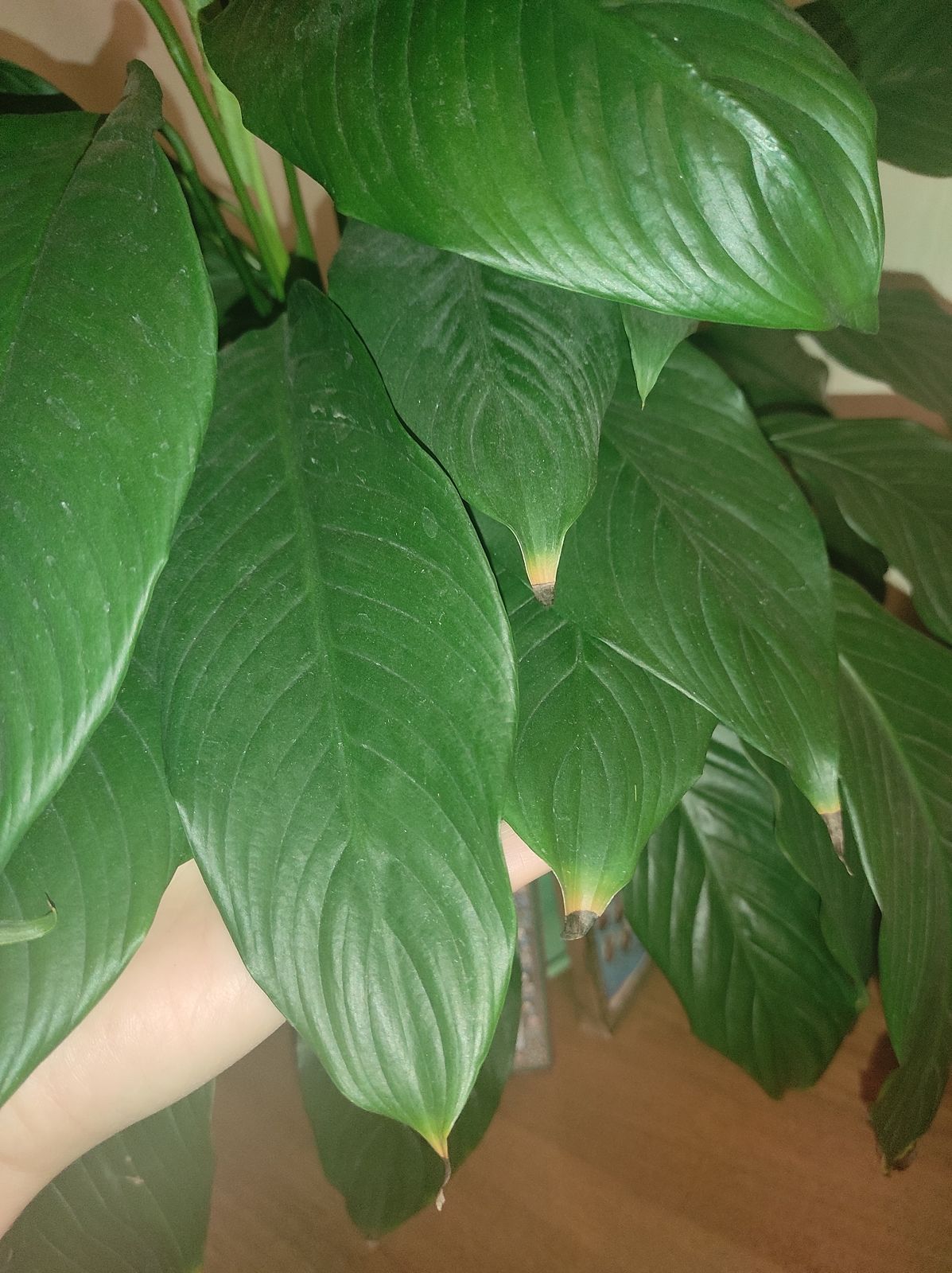 Девочки, может кто-то знает, почему на спатифиллуме кончики листьев желтеют? Здоровые цветы, цветут регулярно, но вот такая проблема даже на молодых листьях