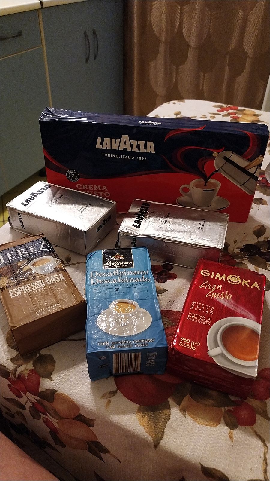 Три пачки зерна Лаваццы по 1 кг взяла, а вот молотый просто гарь на вкус. Дали в подарок жёлтую пачку.
