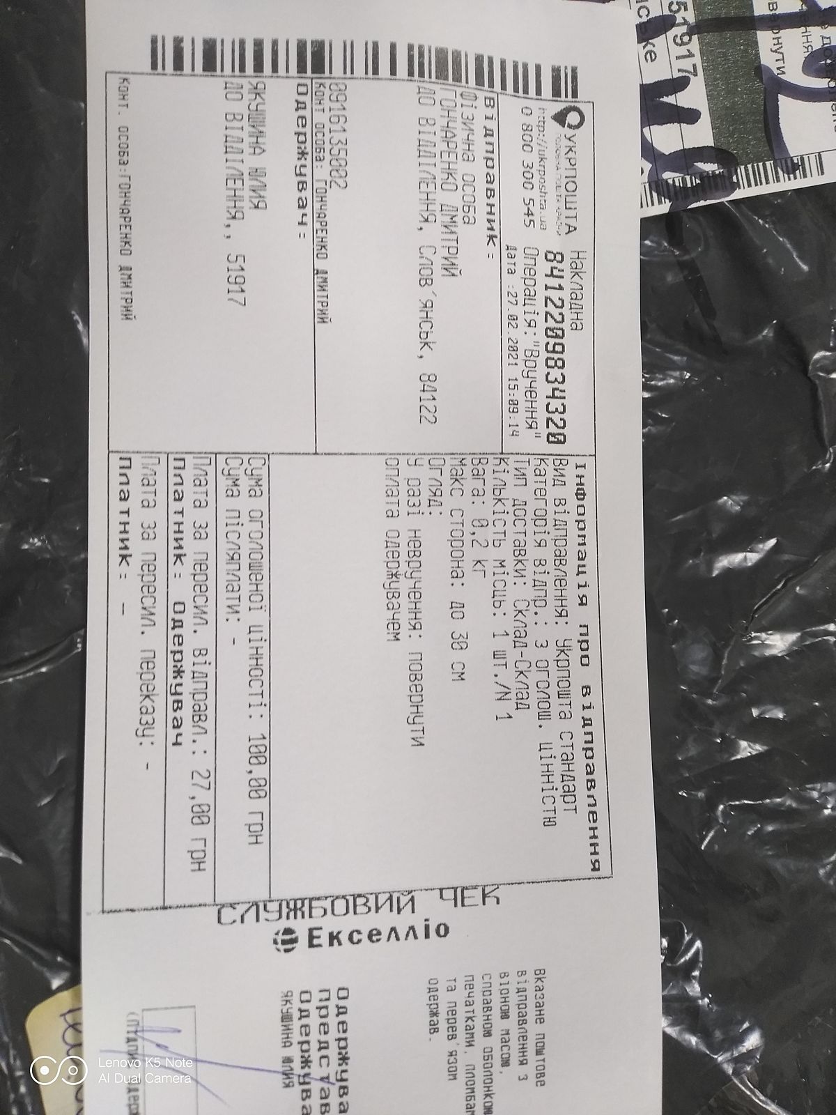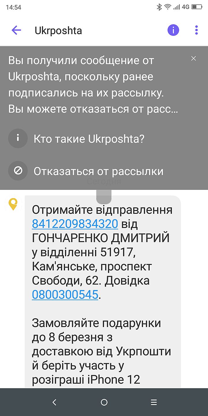 Отправитель - Гончаренко Дмитрий (скорее всего обман), телефон тоже левый 0916135002, Словянск, 84122