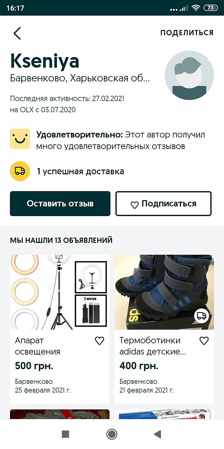 подскажите, а как посмотреть отзывы на олх? Я по вашей ссылке их не вижу? Спасибо.