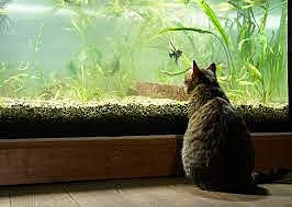 Если животные, рыбки, птицы на экране, то смотрит, наблюдает так внимательно. Были попытки даже на тумбу залезть, но я отгоняю.