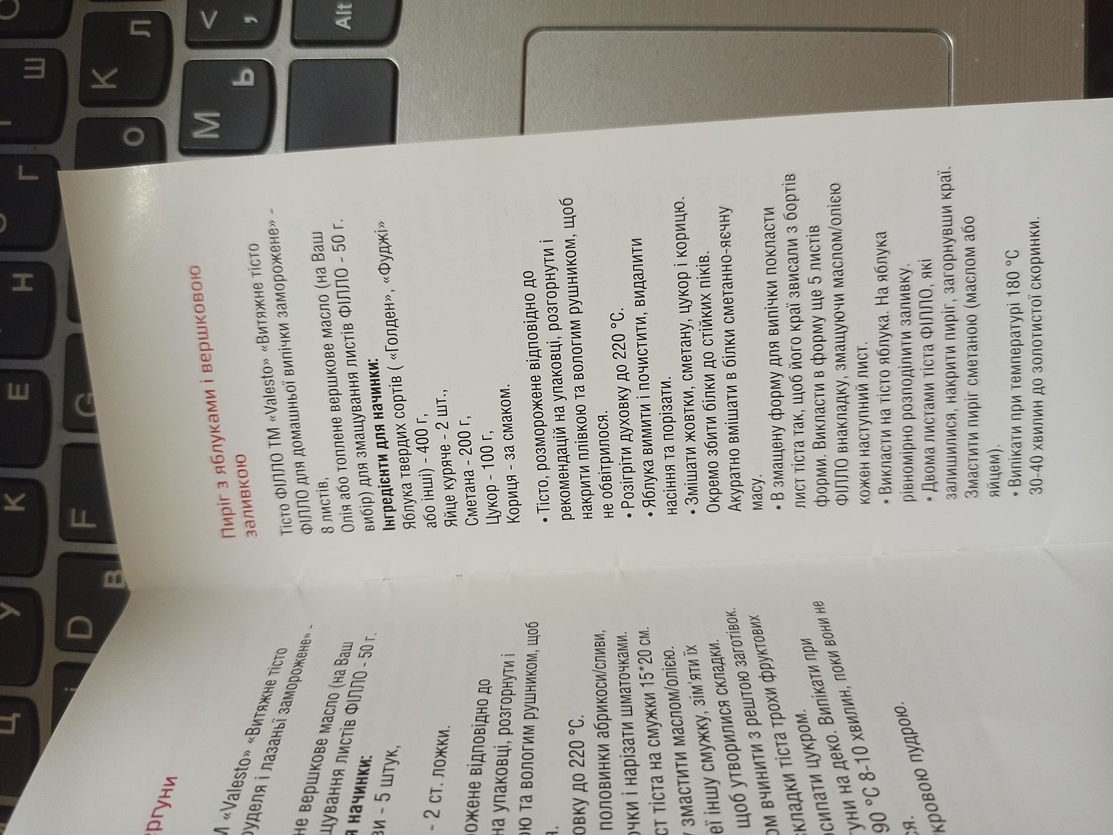 Там внутри была книжечка с рецептами. Пироги, слойки, сладкие и соленые. Даже пахлава была. всего страниц 10 .