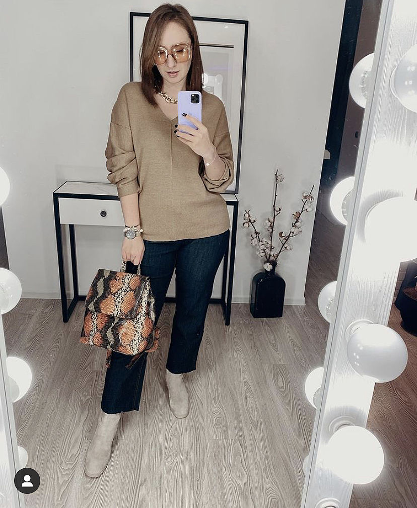 Какие джинсы на работу, на рынок что ли торговать? А блузка со штрипками, а леопардовые вырвиглаз ботинки, что там повторять? еще и половина неактуальных расцветок! У автор все хоть имеет базовый, универсальный вид