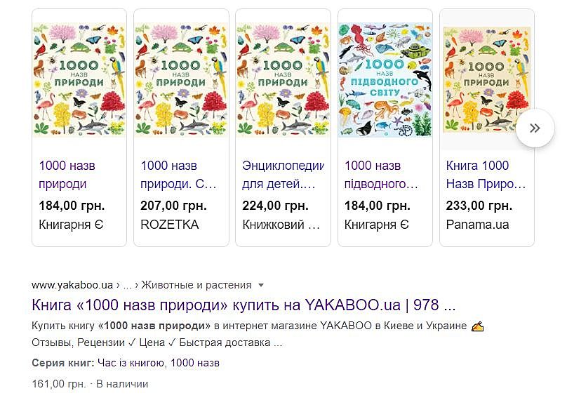 Я только что смотрела книгу ’1000 назв природи’. Минимум в Якабу 161 грн. Обычно 230. Со скидкой в Книгарне - 149.
