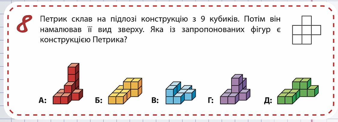 В фигуре В 8 кубиков, а в условии 9, как в Г