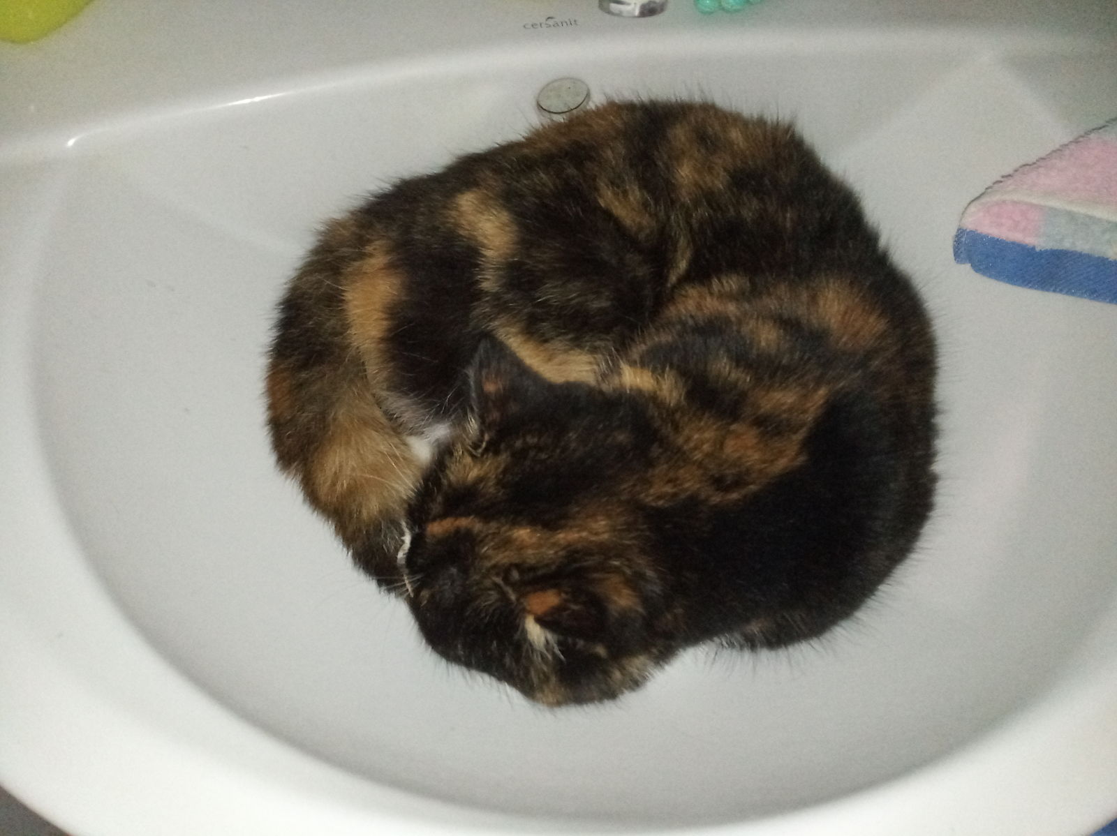 О, прям как моя. Самая первая лезет в раковину или ванную. И потом приходится прогонять и следить, чтобы снова не влезла. Она королева, а я могу и на кухне зубы почистить)