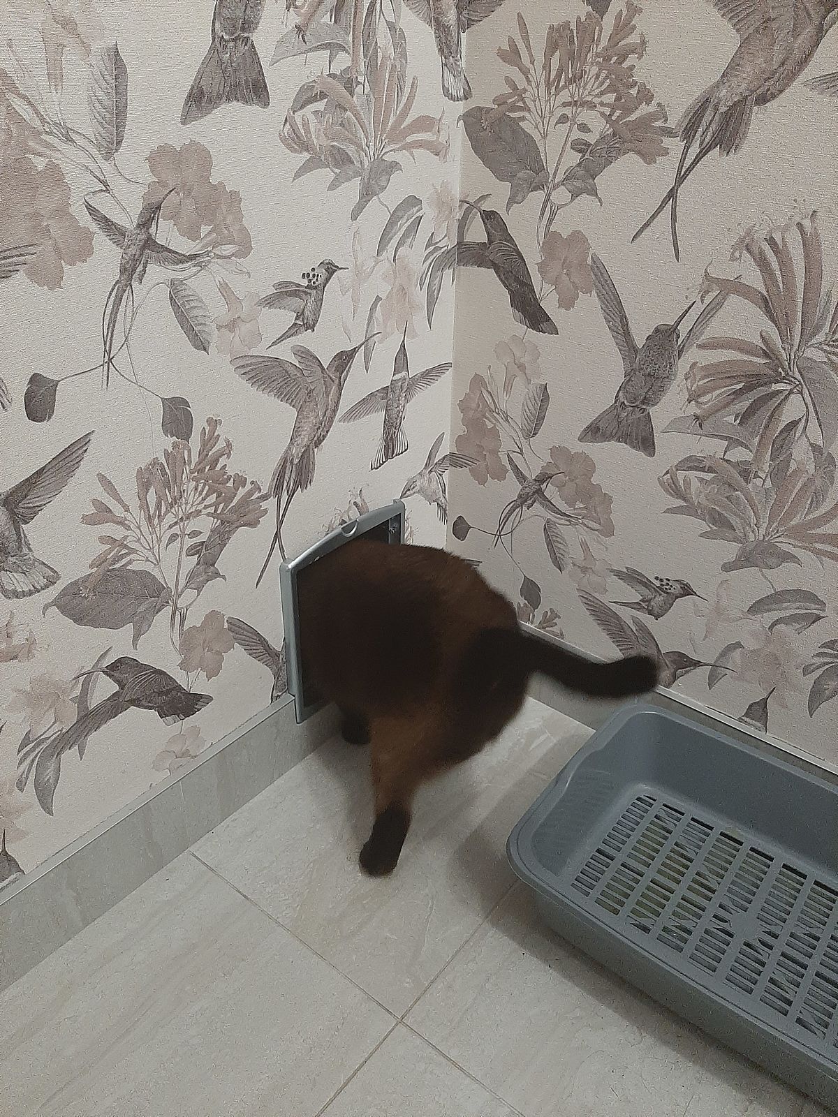Если в доме кошка не одна, то они играют друг с другом через окошко.