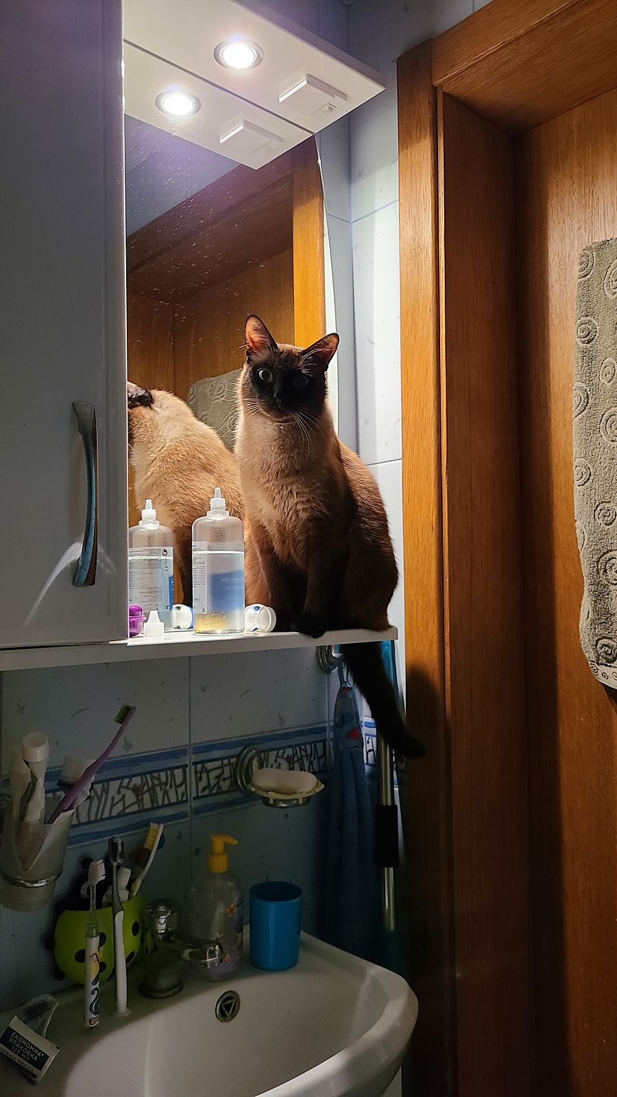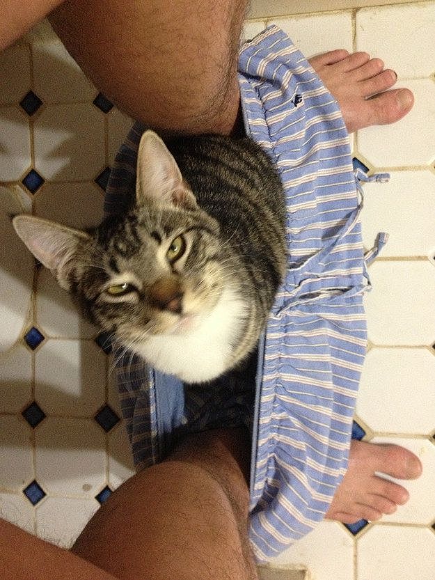 Кот кастрированный, 5 лет будет через месяц. Хоть живем в частном доме, где вокруг коты, но он только выйдет в туалет на улицу и сразу домой. На ор котов не реагирует, кошек вообще может ударить, которые могут орать в нашем дворе. Ходит постоянно за мной или мужем хвостиком. Спит только на подушке возле лица(если сгоняешь в ноги, все равно лезет). Даже в туалет невозможно сходить, чтобы он не приперся следом. Вот он в туалете, извините(но там ничего не видно) пришел и сел на руки. У кого кастрированные коты, у вас тоже так?