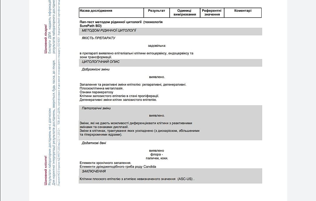 Пришёл мне результат анализа, и вот мне покоя не дает этот asc us. Конечно, я уже начиталась всякого в интернете. Скинула результат гинекологу, но но ответит по сути аж в Пн. Девочки, у кого были подобные анализы, что это значит?