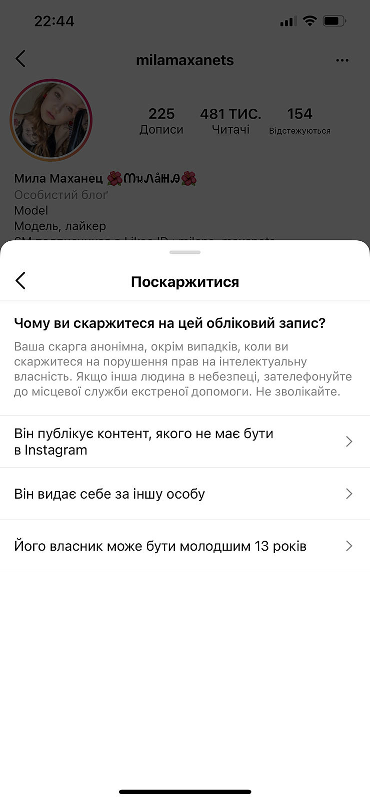И что что мы все пожалуемся? Аккаунт удалится и она заведёт новый . Там мать больная. Ее надо привлекать , а удаление странички ничем не поможет