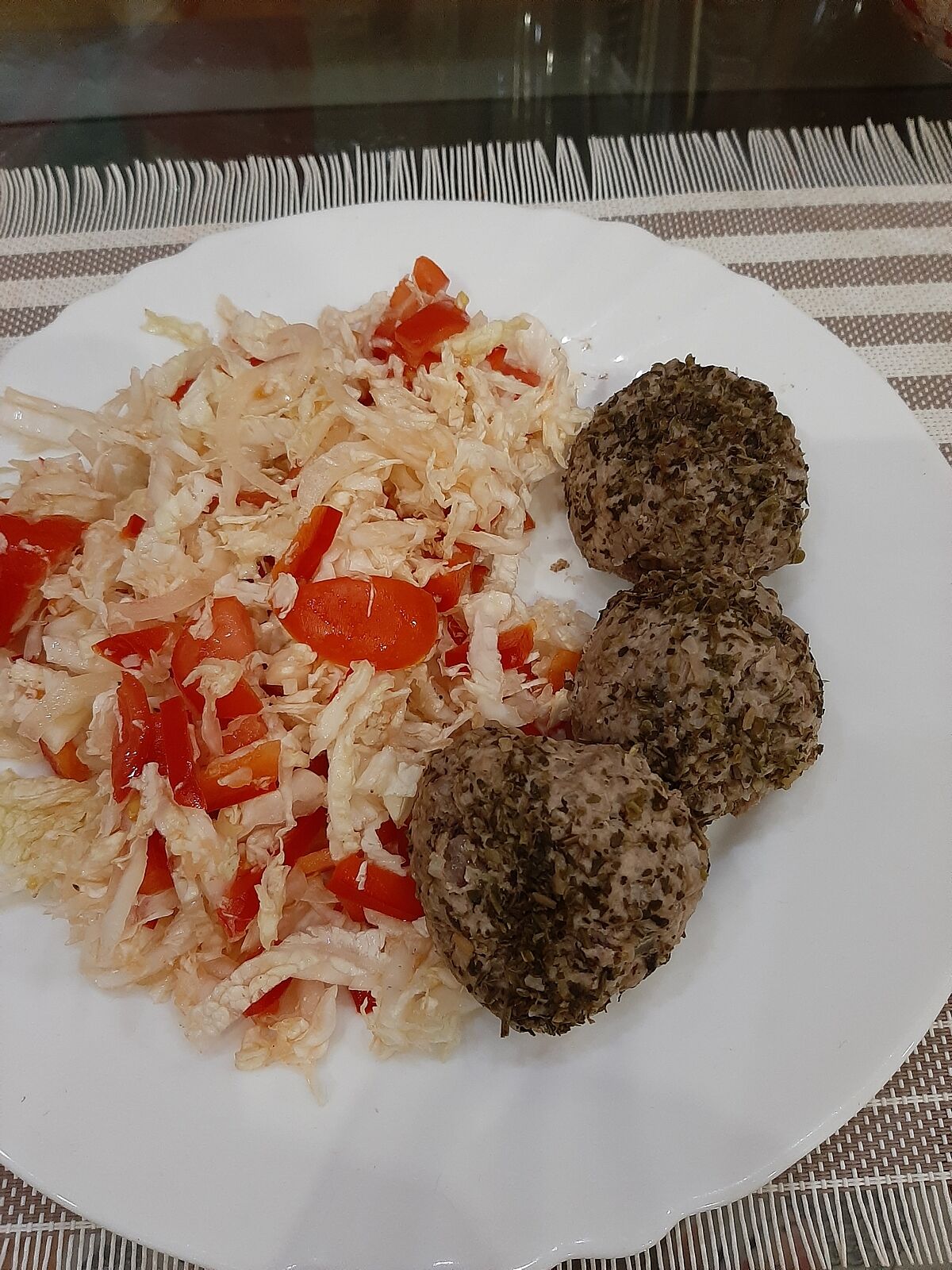 Обед. Сегодня были тефтели с гречкой, на приготовление потратила мин 15 , сделала фарш перемешала с кашей поставила в мультиварку на 10 мин на пару. Накрошила салат пока готовится. На все с мытьём посуды ушло 25мин примерно. Позавчера пожарила печень, мультиварка сварила кашу, я накрошила салат. 15 мин.