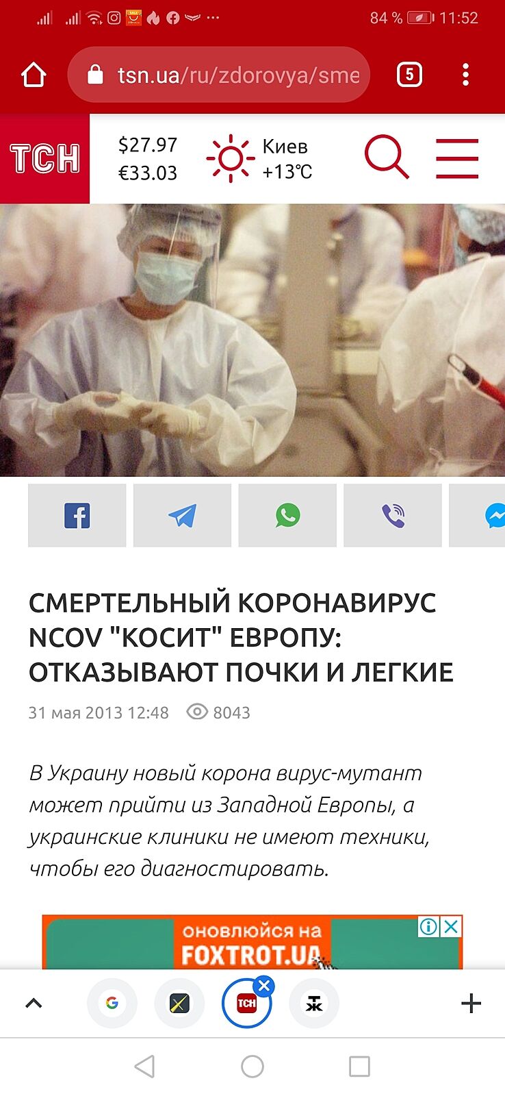 Искала в Гугле кое-что и мне выпала вот эта статья. Открыла исключительно потому, что Гугл показал дату - 2013 год. Статья о смертельном коронавируса, при котором отказывают лёгкие и почки. Это что же получается, что Китай и не причем вовсе? И что эта радость уже давным давно с нами? Только он раньше название другое носил?