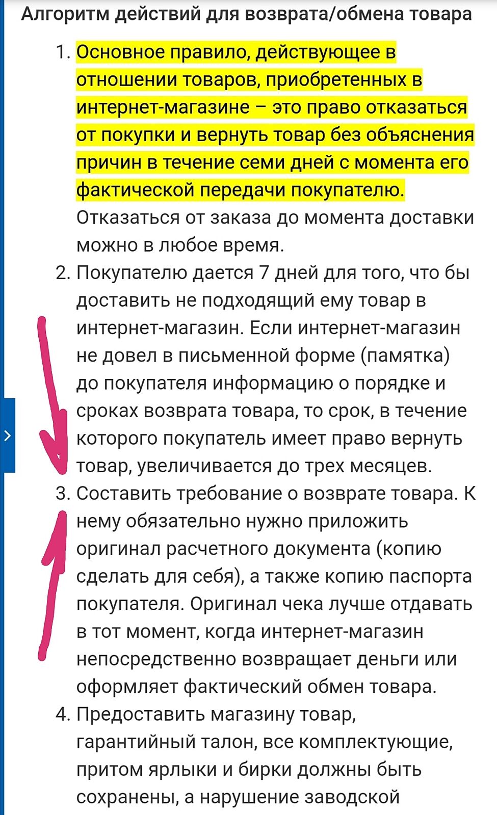 На основании чего нет возврата у вас? Вы продаёте товар, который не подлежит возврату и обмену?