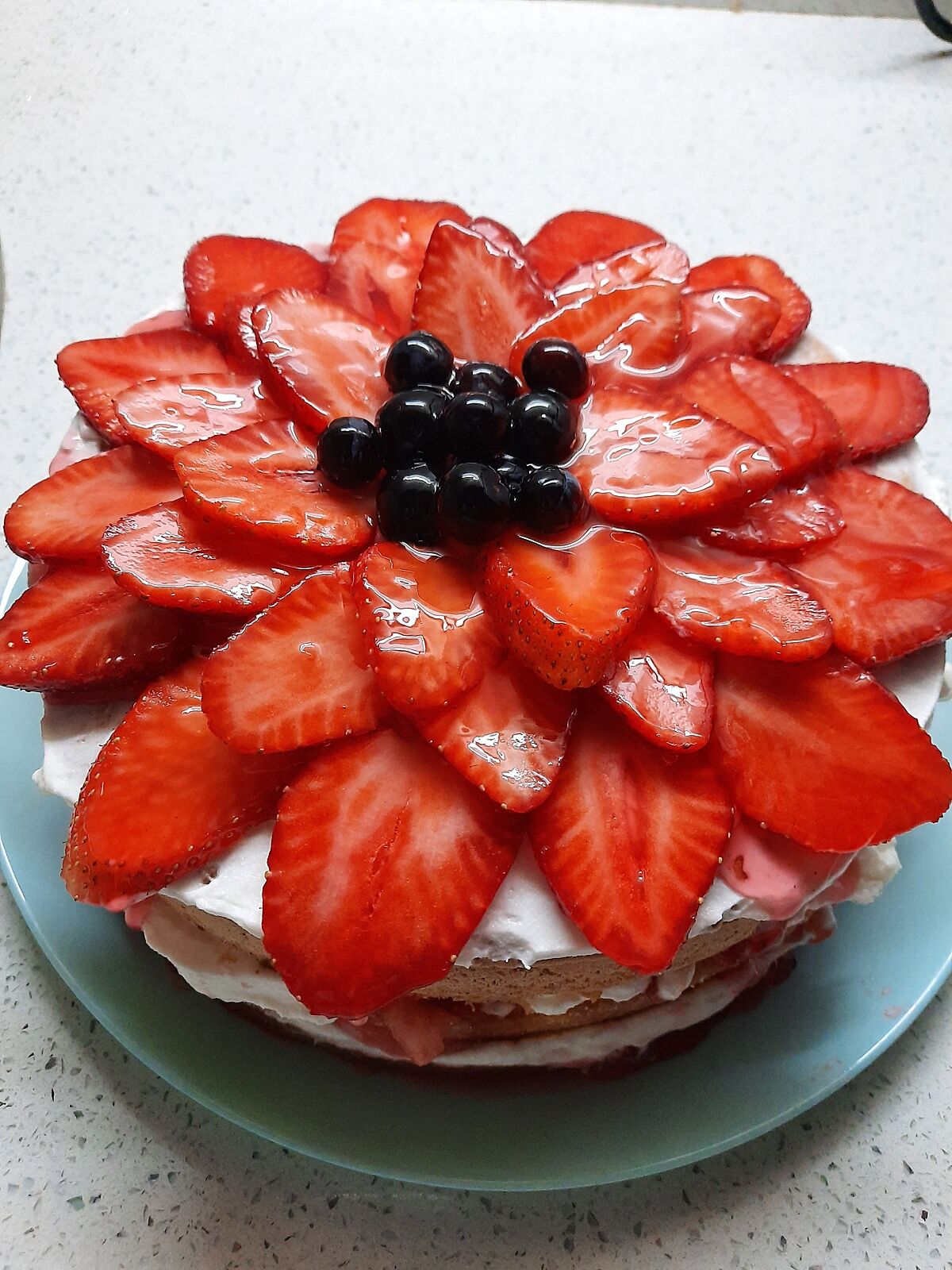 гель кондитерский прозрачный есть . вот ним сверху фрукты закрепляют, что б блестели