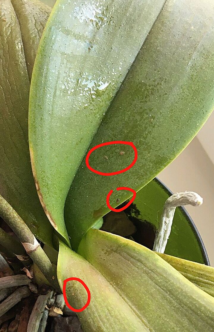 на орхе щитовка, ее вывести можно только Актарой. мыло, брызганья, протирания от щитовки не спасут. орху надо замочить целиком в Актаре, раствор сделать не пакет на 10л, как по инструкции, а 1 пакет литров на 3-4. окунуть туда с головой и минут на 20 пусть побудет в этом растворе.