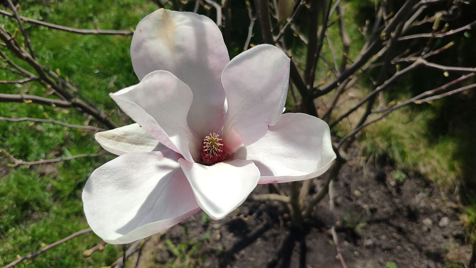 Клумбу не покажу, но тюльпанчик один красивый зацвёл