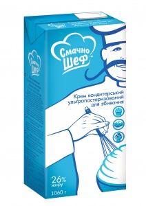 Крем кондитерский ультрапастеризованный для взбивания, 26% жира, тм «Смачно шеф», 1060г