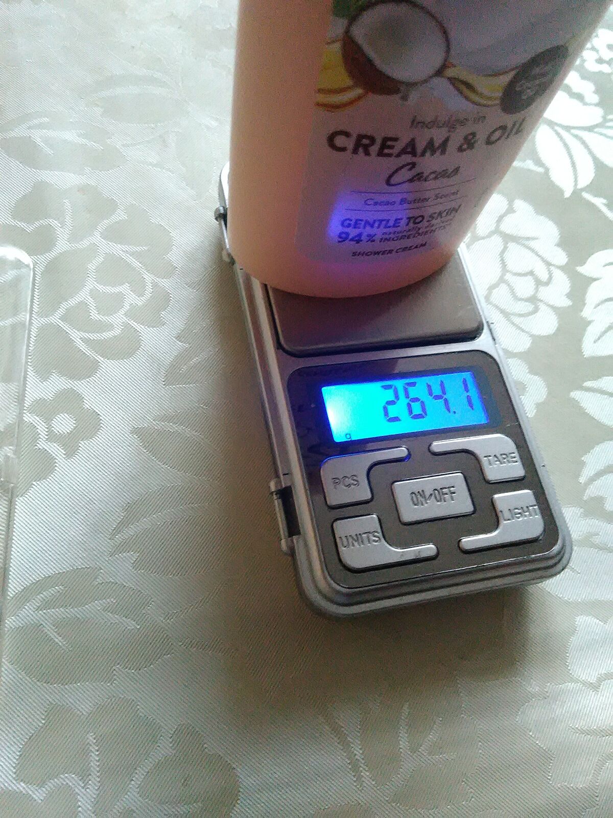 Вот, ради интереса взвесила ещё и гель для душа))) Раз пошла такая свадьба, режь последний огурец!
