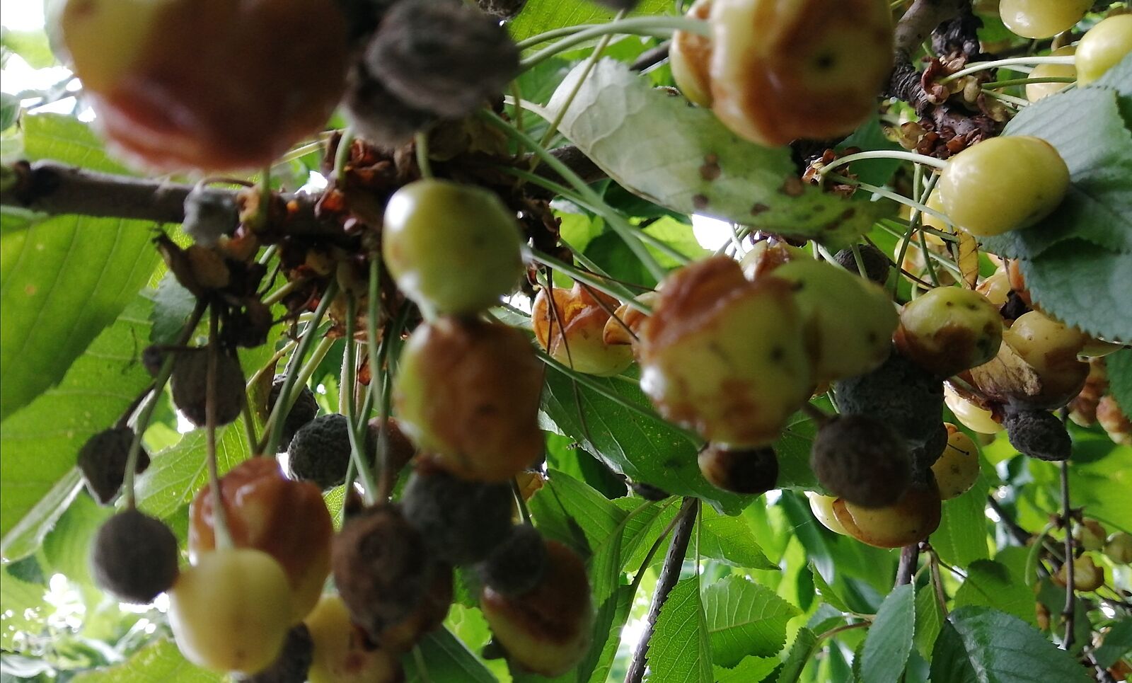 Дожди и холод. В прошлые годы мы уже в это время первые кг. рвали. В этом году черешне хана. Если дожди продолжатся, то и поздняя накроется. Её разрывает от избытка влаги.