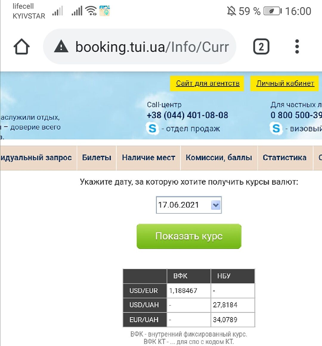 ТУИ. Как узнать текущий курс валют у этого туроператора?