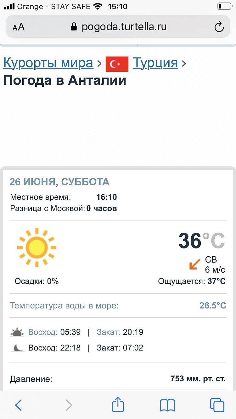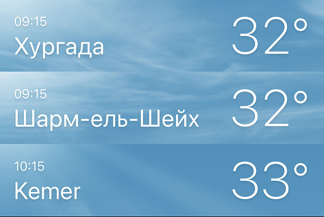 Судя по прогноза погоды, в Хургаде сейчас температура ниже, чем в Анталии. Сейчас я в Хургаде, жара переносится легче, нет такой влажности. Всегда боялась Египта, тем более летом. Но сейчас поняла, что климат мне здесь больше нравится, чем На Средиземном море в Турции.