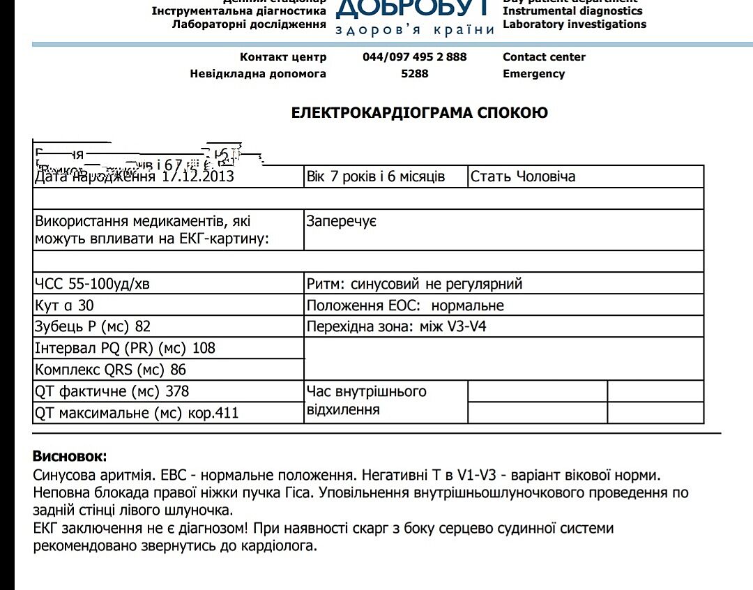 Делали ребенку кардиограмму сегодня,пока к доктору не попали,получила расшифровку ЭКГ и вот что там написано :