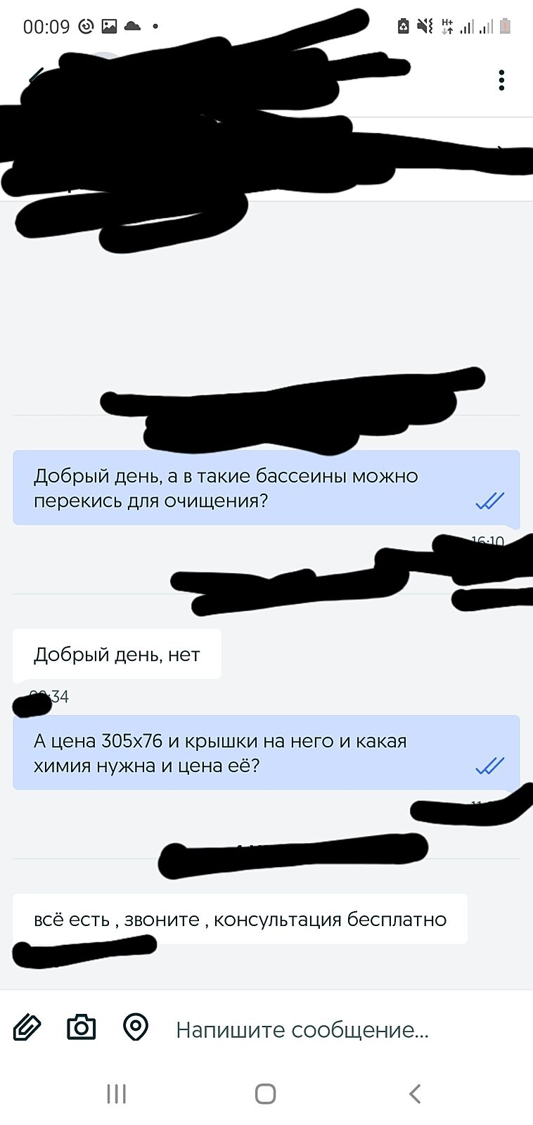 Купили бассеин не самый дорогой, но выбирали (фото2) купили в эпицентре и химию перекись 35% вроде как с консультантом, тоже долго смотрели. А теперь мне продавец на ОЛХ, где хотела изначально заказать, на мой вопрос "можно ли в такие бассеины перекись?" Ответил нет.....
