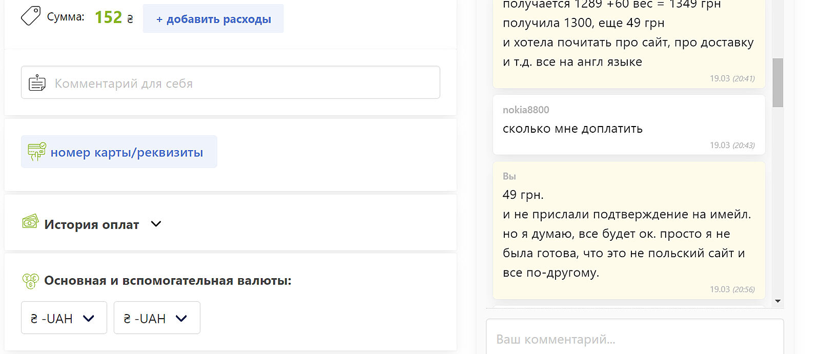 я написала ему сразу, что там все на англ языке, я не знаю английского. прежде, чем покупатель делает заказ, он же находит сайт, читает,выбирает товар, правильно? я работаю 7 лет посредником, никогда не читаю сайты перед выкупом, если меня об этом не просят. мне заняться больше нечем, думаете, чем интересоваться миллионами сайтов? оплата юанями вышла после оплаты, покупался товар в злотых.