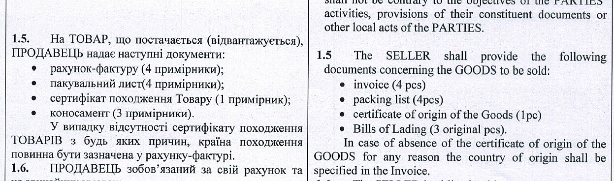 П.с. открываете Контракт и там будет перечень документов которые должны сопровождать груз.
