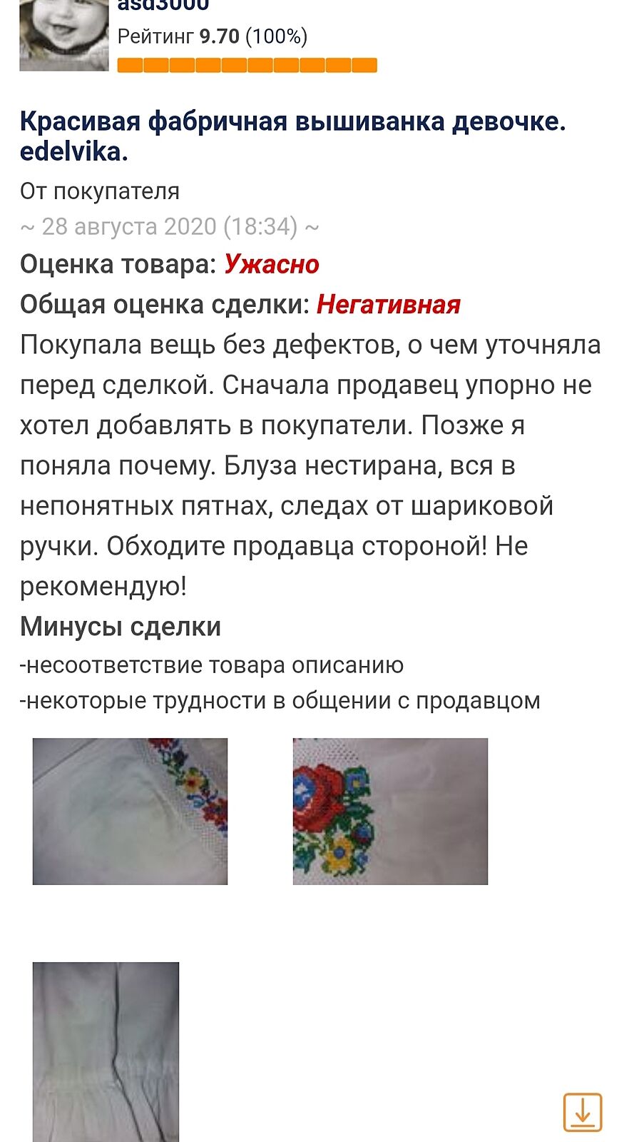 Мне не понятно одно, автор вы отзывы совсем не читаете? Только рейтинг смотрите? Она же уже отправляла вещи в отвратительном состоянии!