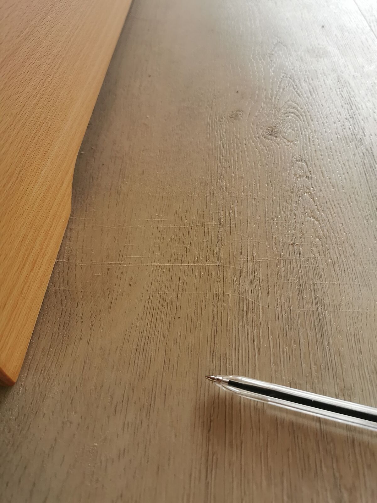 Очень не порадовал материал, хотя все продавцы наперебой уверяли, что это одно из самых стойких напольных покрытий и круче только плитка. Понимаю, что когда на этом полу начнут бегать собаки с когтями и дети с машинками, а у письменного стола начнет кататься кресло на колесиках - его можно будет сразу снимать, выбрасывать и укладывать что-то другое.