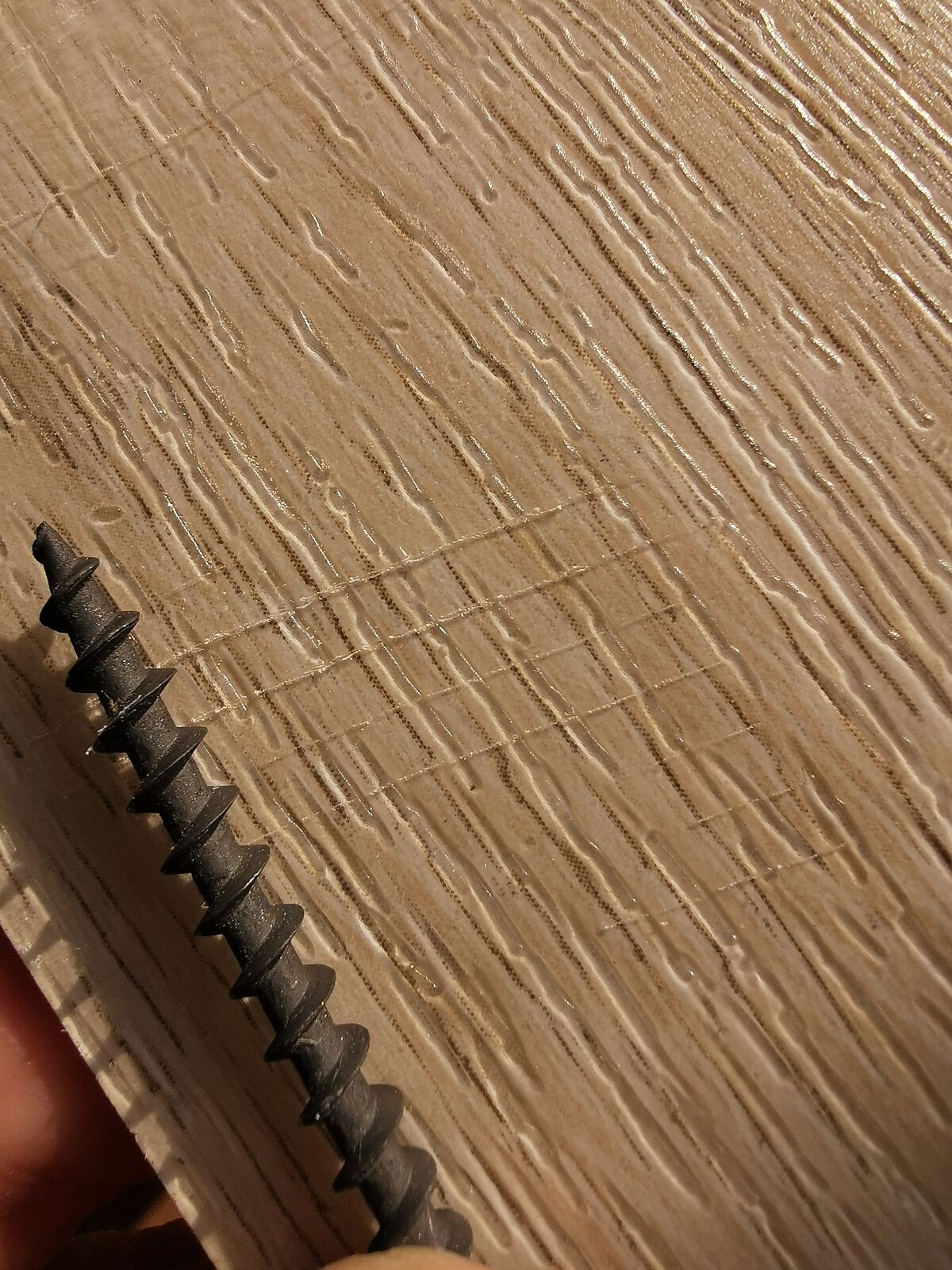 Он визуально очень, очень прочный. Моя ошибка была в том, что я поверила этому обманчивому ощущению и не пришла его выбирать с гвоздем... Царапины остаются даже если взять обычный крупный саморез и этой резьбой прокатиться по покрытию, без усилий особых