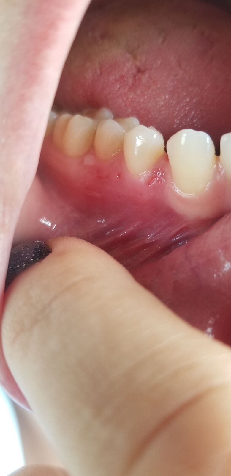 Лет 5 назад появилось белое пятно на десне. Стоматолог сказал, что скорее всего это механическое повреждение от нитки, но лучше убрать. Меня это пятно никогда не беспокоило. За 5 лет оно слегка увеличилось, но не болит и не приносит дискомфорт. Пару дней назад покраснела десна и ниже появилось подобное пятнышко, а вокруг некоторых зубов появилось точечные ранки. Десна немного побаливает. К доктору попасть сейчас не могу. Может у кого-то было подобное, что это может быть?
