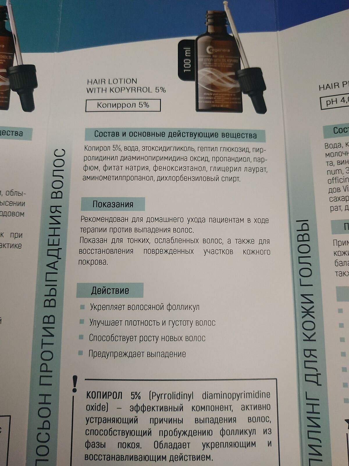 Есть с копиролом, а есть с Миноксидилом. Первый рекомендуется для женщин с диффузным выпадением, а второй для мужчин с андрогенетическим выпадением