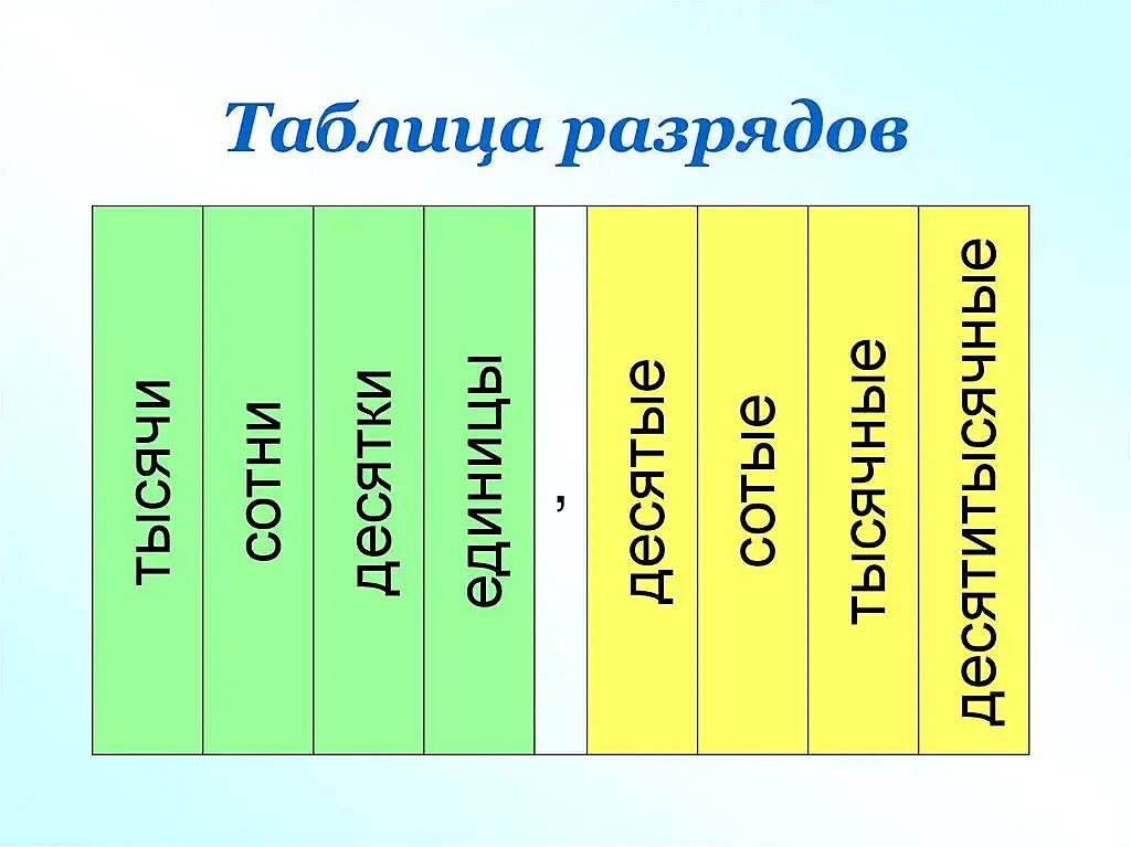 Посмотрите таблицы. Десятичная дробь делится по разрядам.
