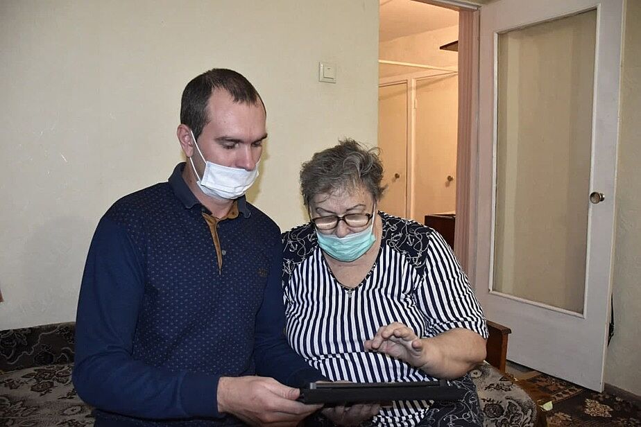 В лнр к инвалидам на дом пришли работники соц. служб, помогающие проголосовать.