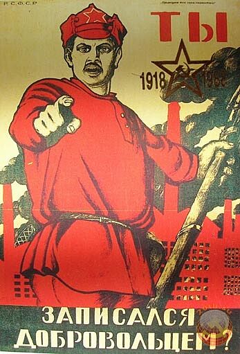 Мне тоже давно напоминает такие лозунги и плакаты. Самое интересное что тогда, что сейчас добровольцев пруд пруди.