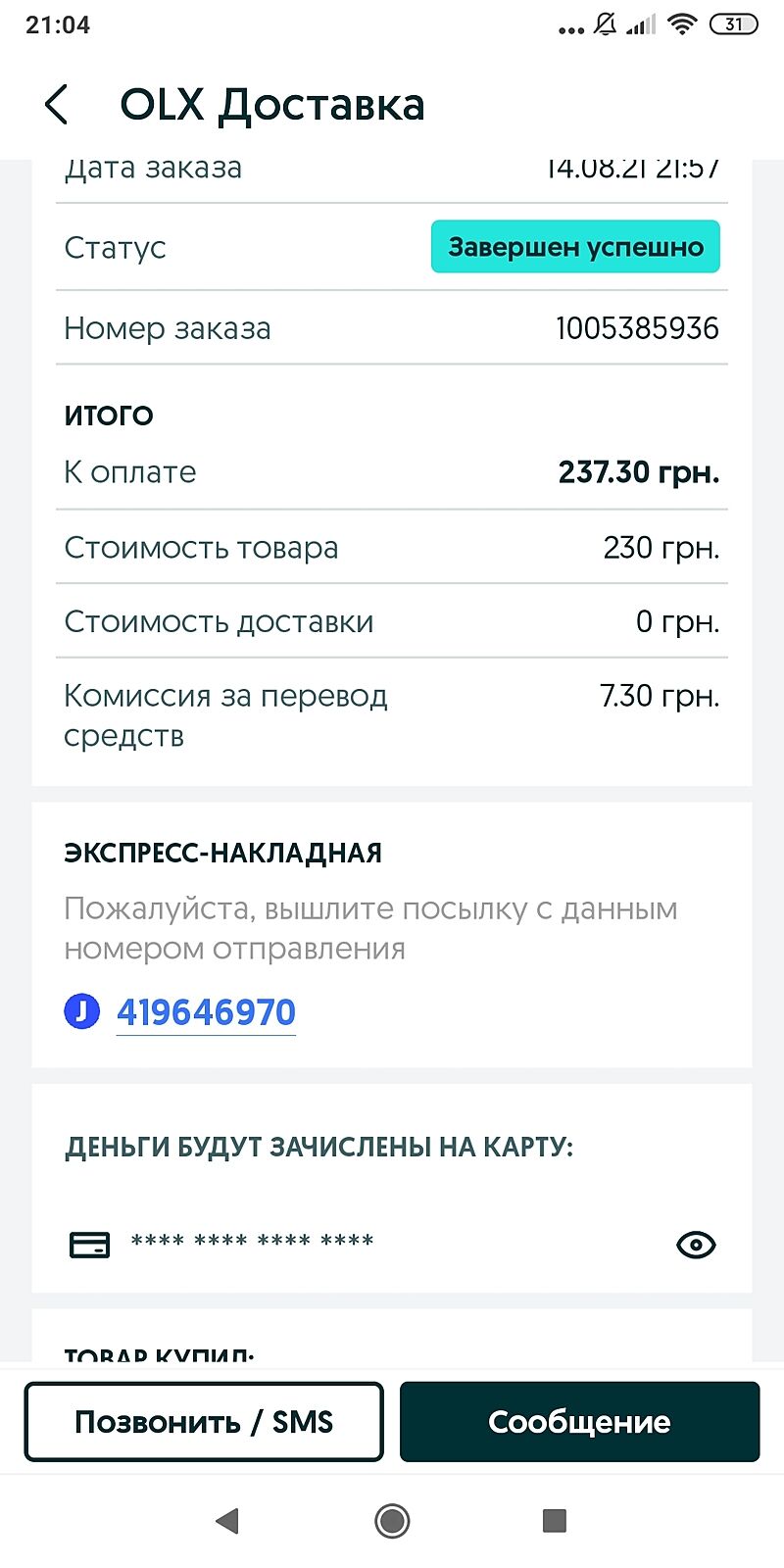 Якщо це одяг, він міг оформити доставку картою мастер, доставка в такому випадку безкоштовна.