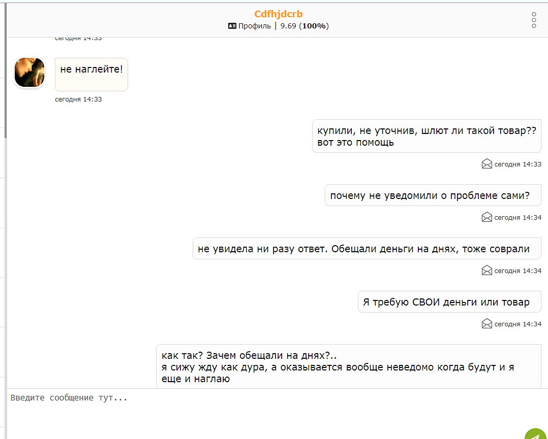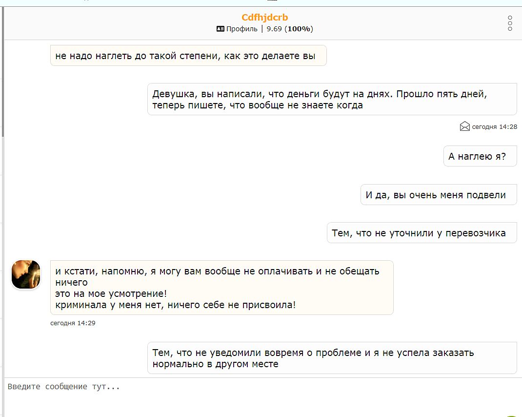 В итоге я облита ушатом *овна, без товара и без денег на данный момент. Вот так бывает(