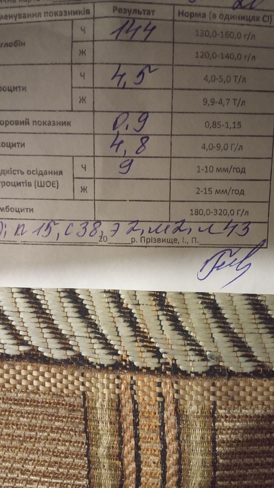 По крови, роя-9,лейкоциты-4.8, палочки -15.