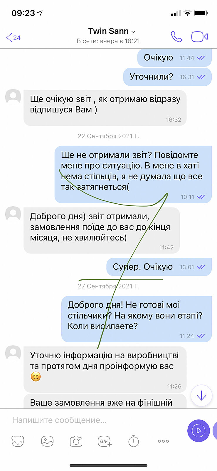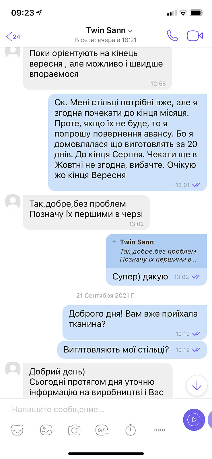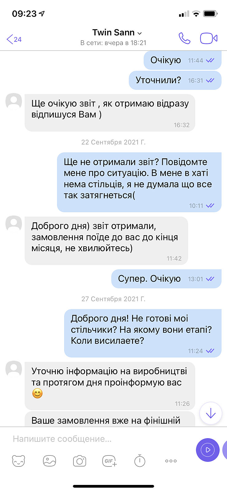 Заказала стулья в инстаграм 11 августа.