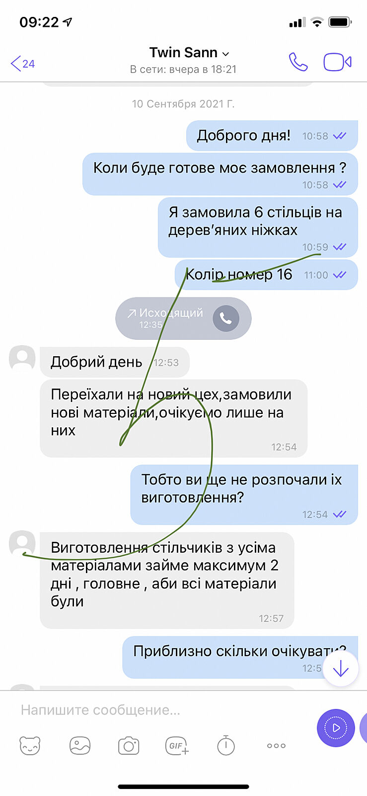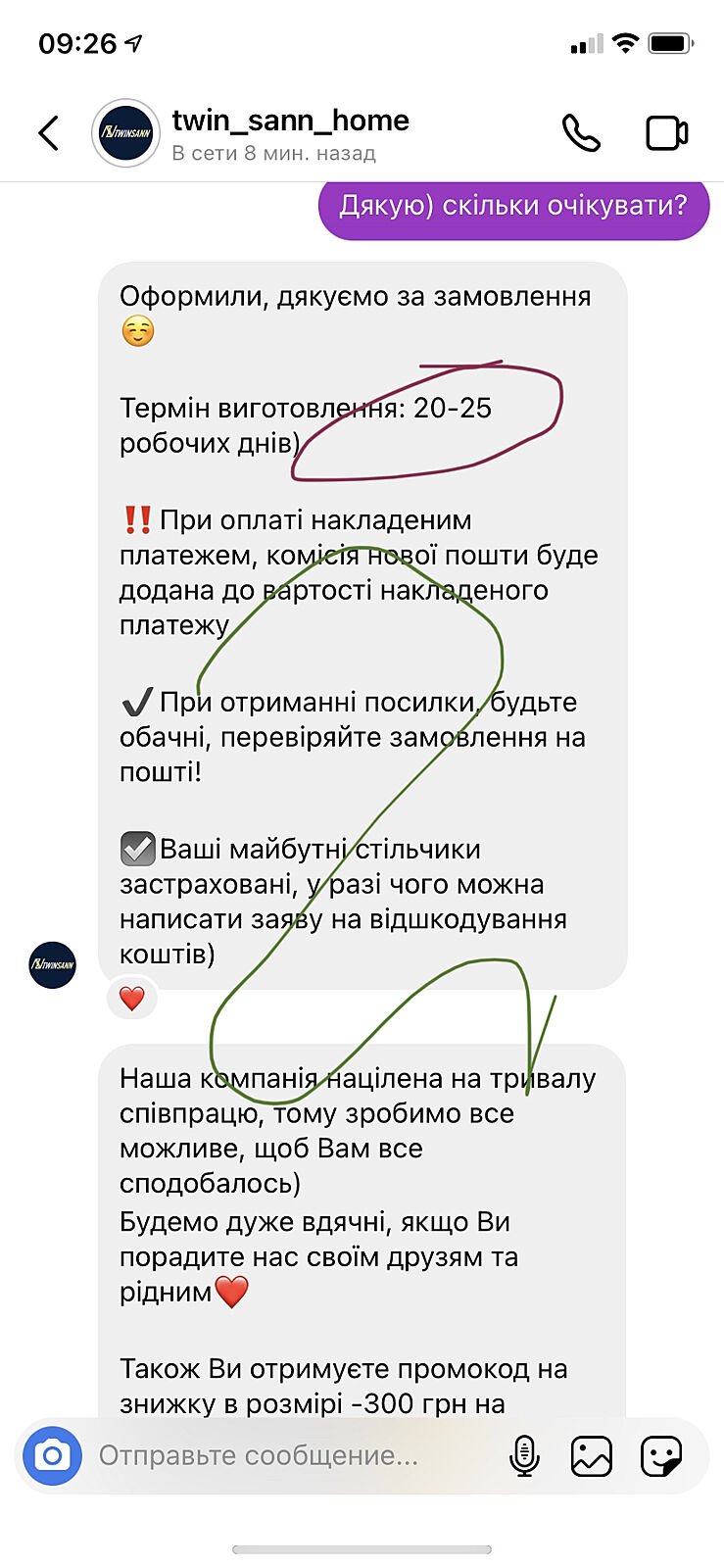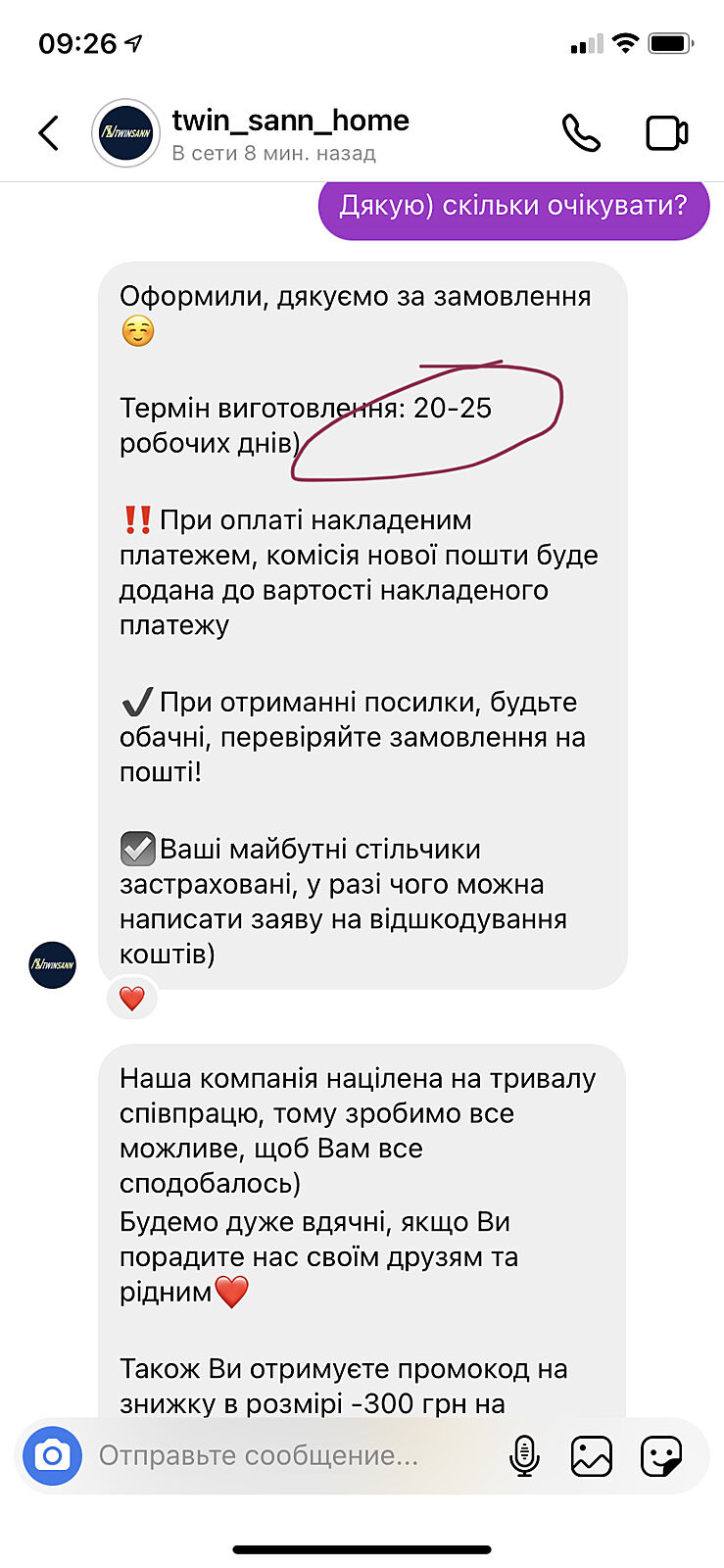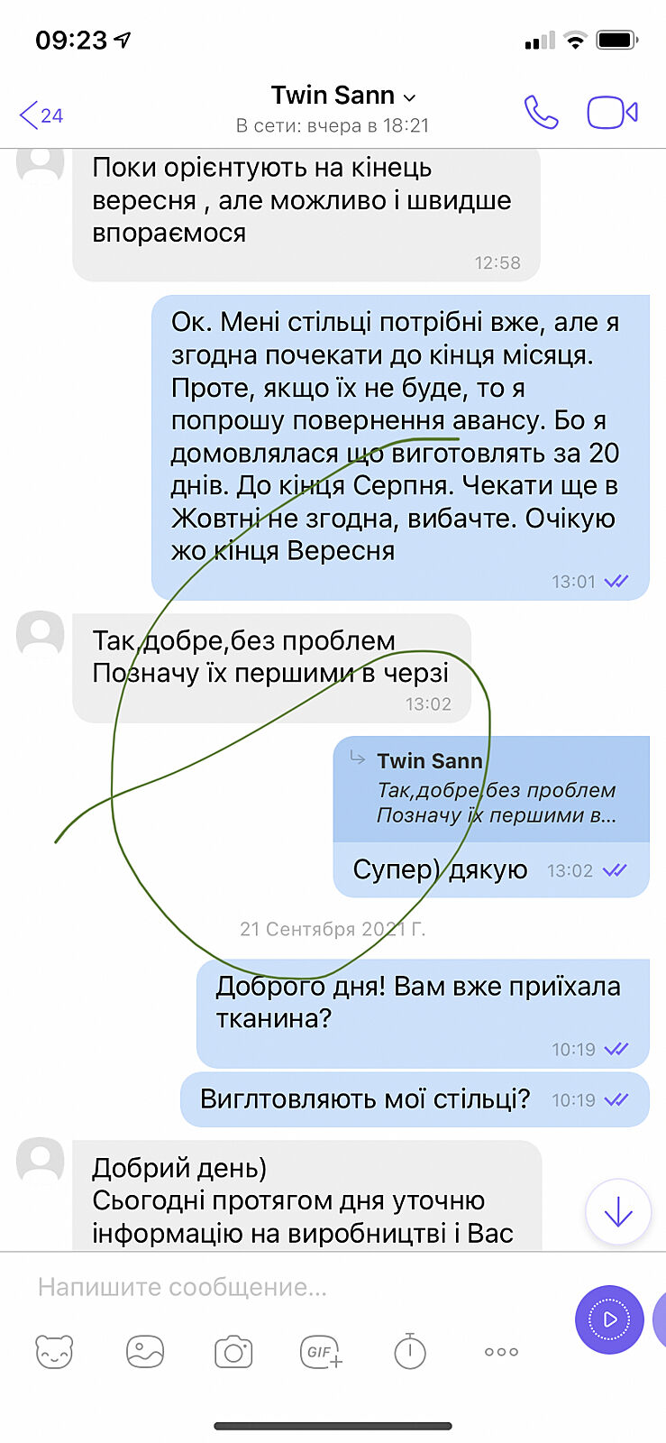 Заказала стулья в инстаграм 11 августа.