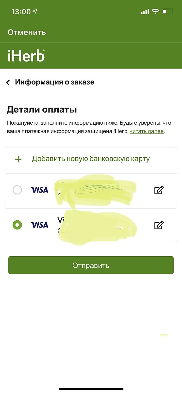 Заказ айхерб виснет на этом пункте . Что делать ?