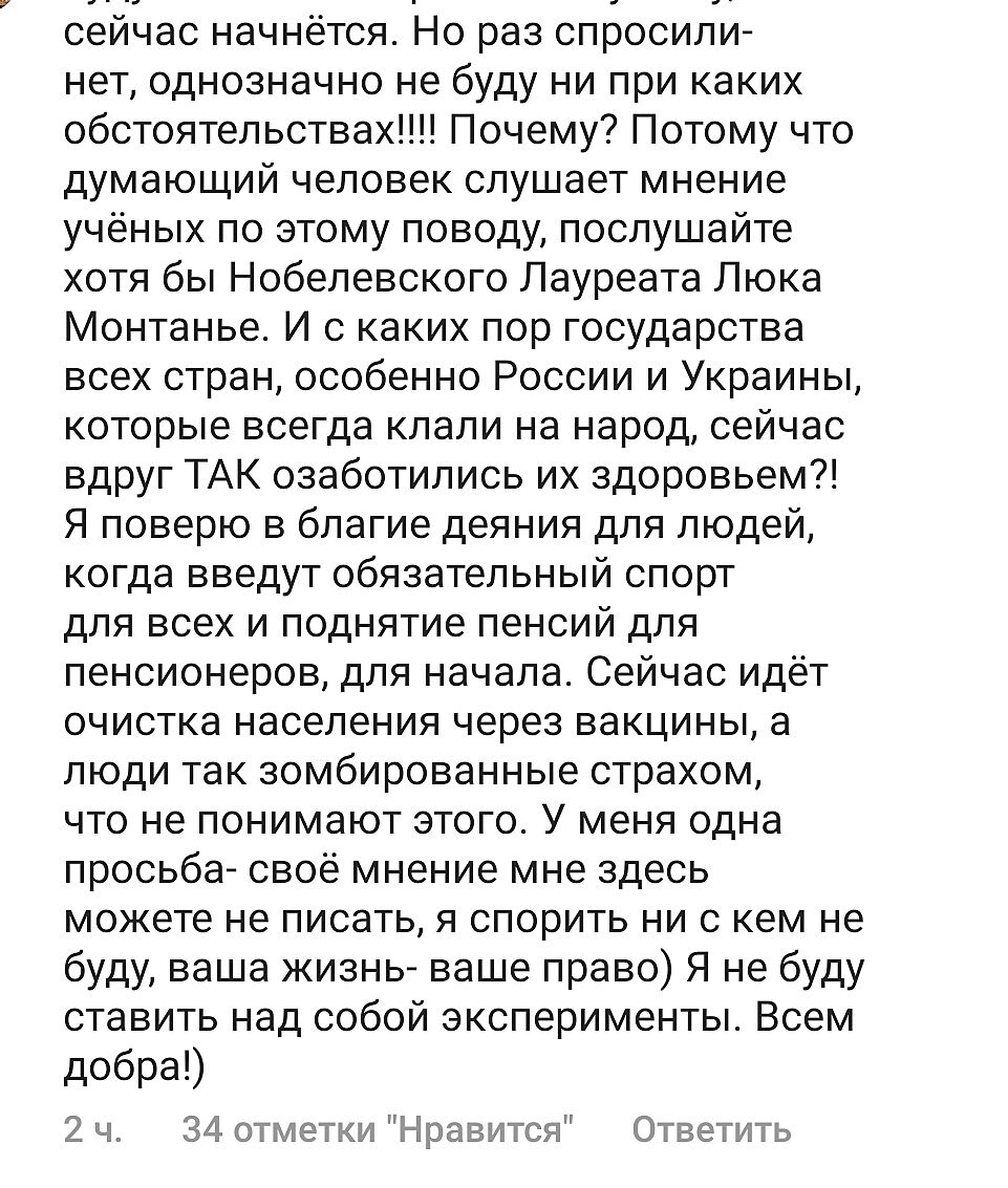 Но думаю мы все тут участвуем в одном большом хм назовем это эксперименте, что вакцинированные, что нет.