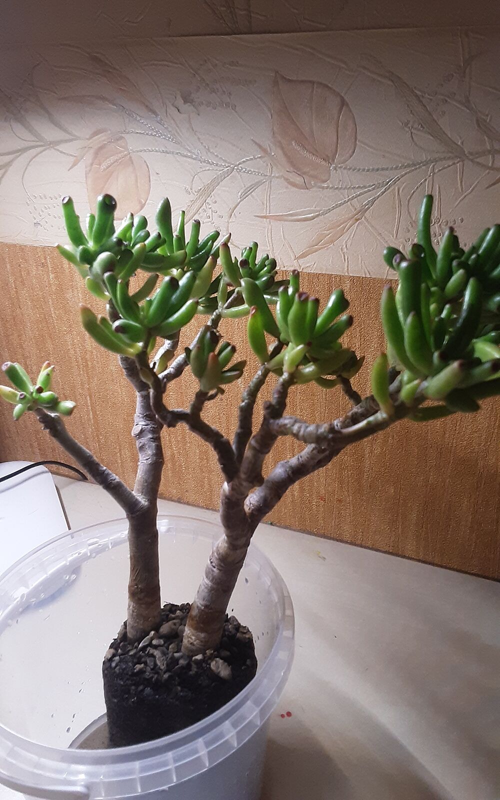 Крассула Корал известна и под именем Crassula Skinny Fingers. Толстянка Корал хорошо ветвится, относительно остальных быстро растет, имеет мощный ствол: